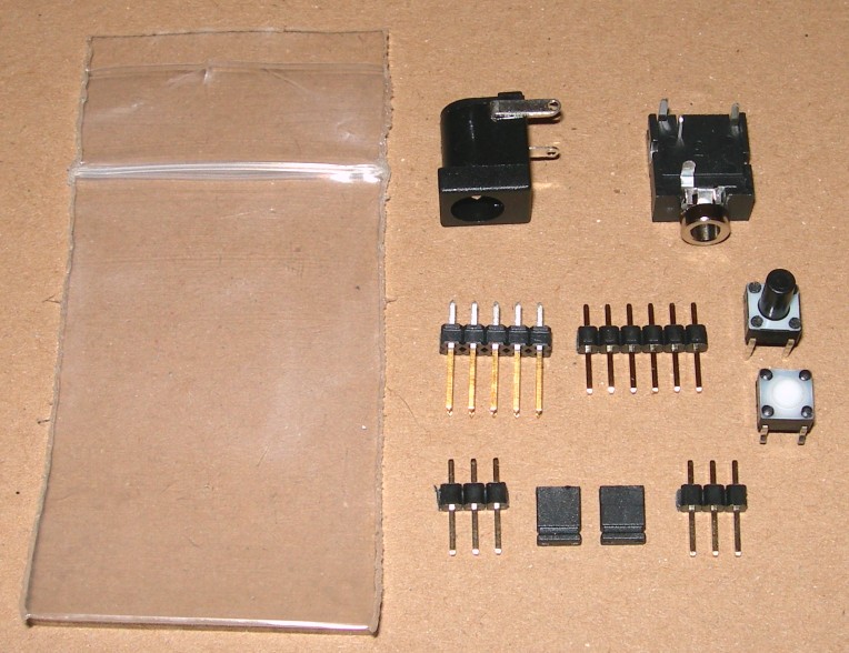 Hier habe ich die (sehr) langen R+C-Streifen mit den Elkos und sonstigen flachen Sachen. Alles Teile OHNE Stacheln.