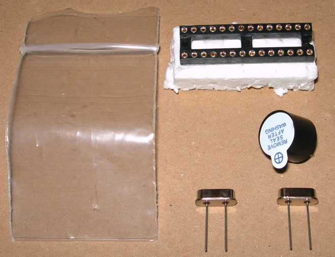 Die Sockel am Besten auf Styropor stecken. Hier noch einen Buzzer an die Seite gesteckt. Und es war noch etwas Platz für die Quarze. Für die Tüte selbst gilt natürlich auch das oben Gesagte.