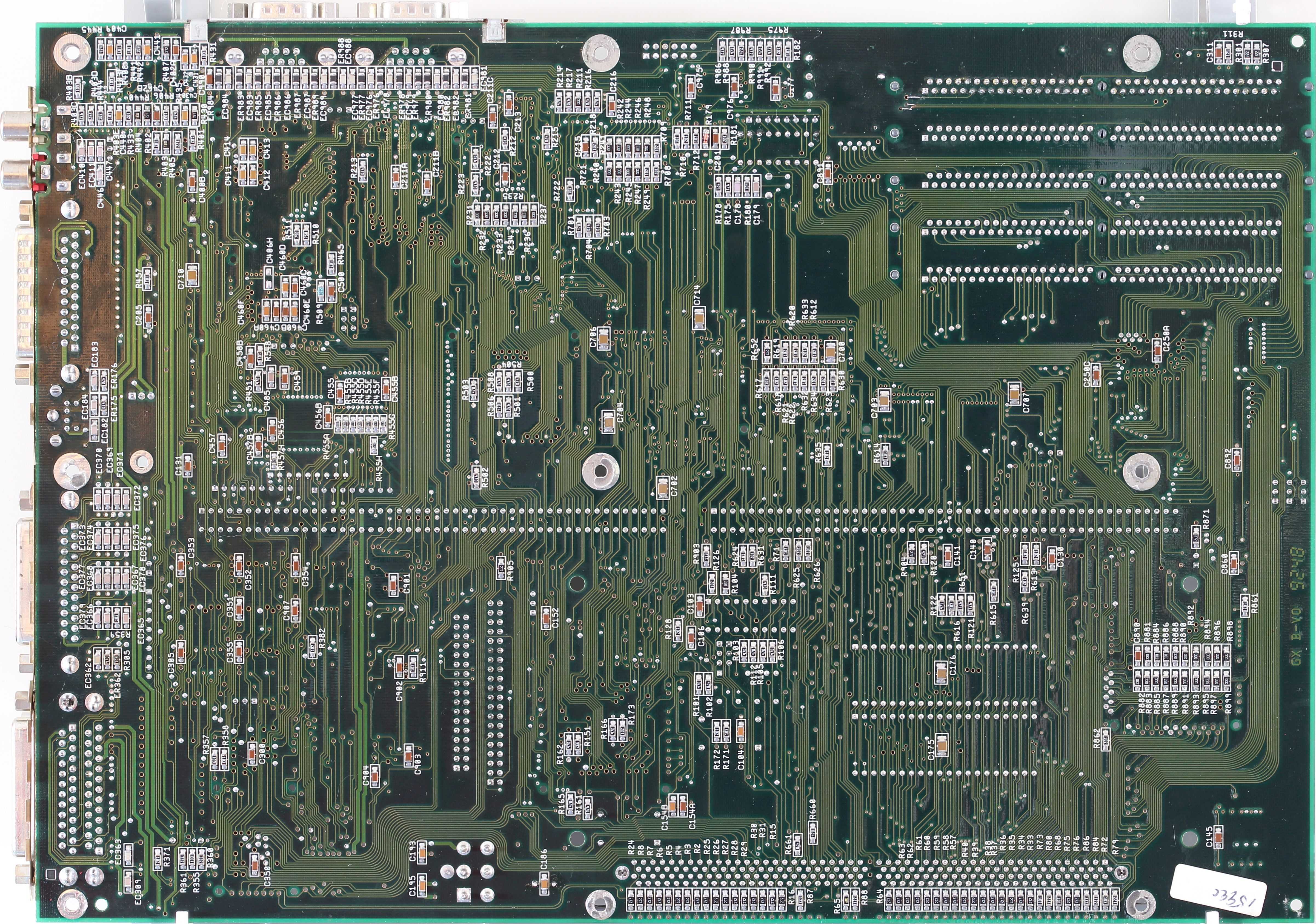 Amiga 4000 Hauptplatine, Rev B, reworked (Knopfzelle anstatt NiCD-Akku, R179 gegen Diode getauscht, dazu einige VIAs gefixt)